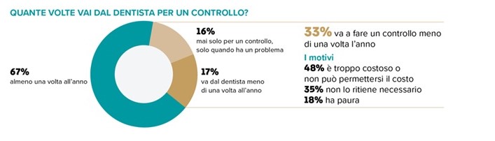 Preoccupa inoltre la scarsa consapevolezza dell’importanza della prevenzione: il 35% degli italiani non considera necessari i controlli dentali regolari, mentre oltre la metà non utilizza strumenti fondamentali per l’igiene orale come il filo interdentale. Un atteggiamento che rischia di trasformare problemi di piccola entità in interventi più complessi e costosi, come già accaduto al 24% di coloro che hanno rimandato le visite.